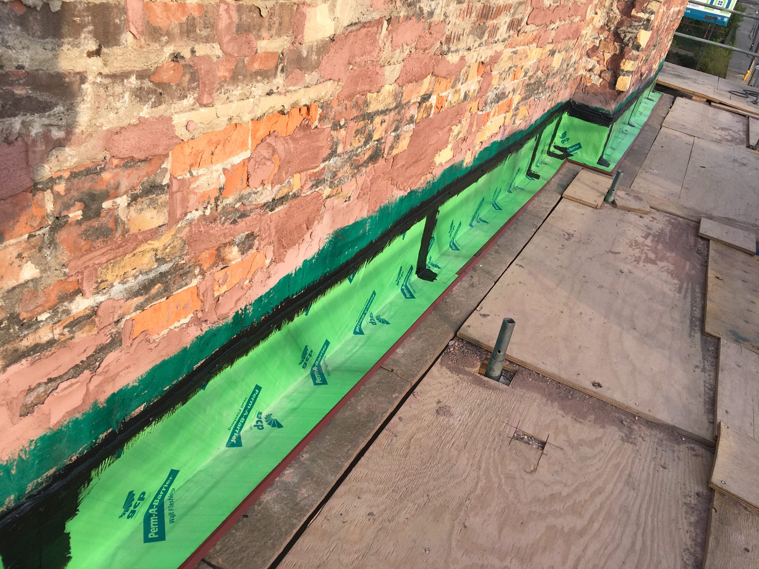 - Installation of Peel and Stick Membrane at the Lower 6-8 Courses of Brick