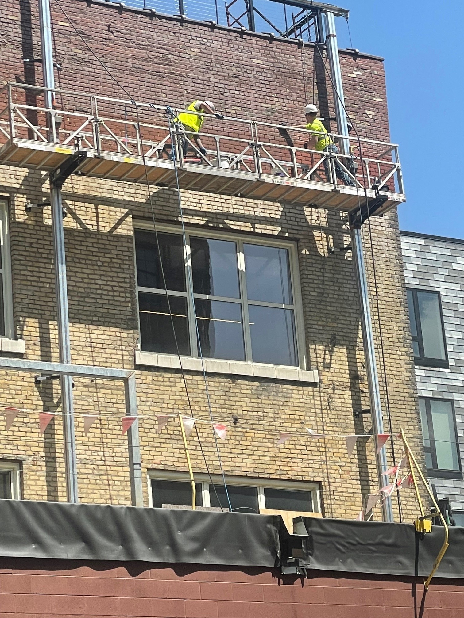 Advanced Masonry Restoration was contracted by Gardner Builders to perform masonry restoration work at the J.I. Case building, formerly known as the Spaghetti Factory. The work included tuckpointing the column returns on the street-facing façade, tuckpointing the base brick at the sidewalk, tuckpointing the exterior side of the parapets overlooking the roofs, spot replacing brick, caulking the windows of the building, caulking the skyward facing joints of the terra cotta, painting the undersides of the lintels, and relaying new stone at the railing locations.